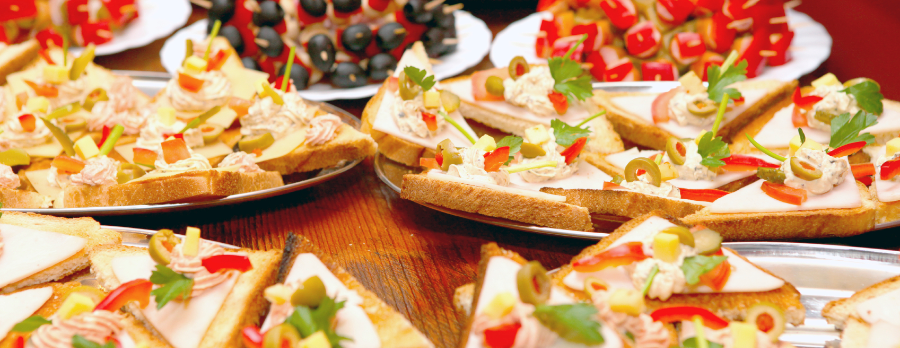 vornehmlich Speisen geben, die auf die Hand ausgegeben werden können. Zum Beispiel einen Burger, oder ein aufgeschnittenes Brötchen mit einer Frikadelle.